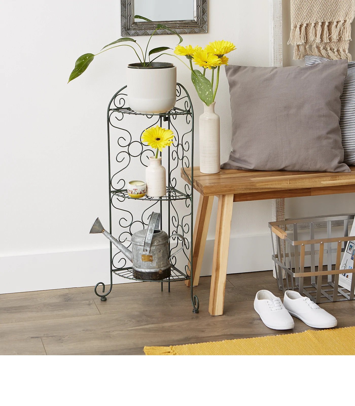 • This plant stand is perfect for holding your favorite potted plants or trinkets of any kind, both indoors and outdoors. Place in a sunroom, patio, deck, or porch to add stylish home décor and greenery to your space.