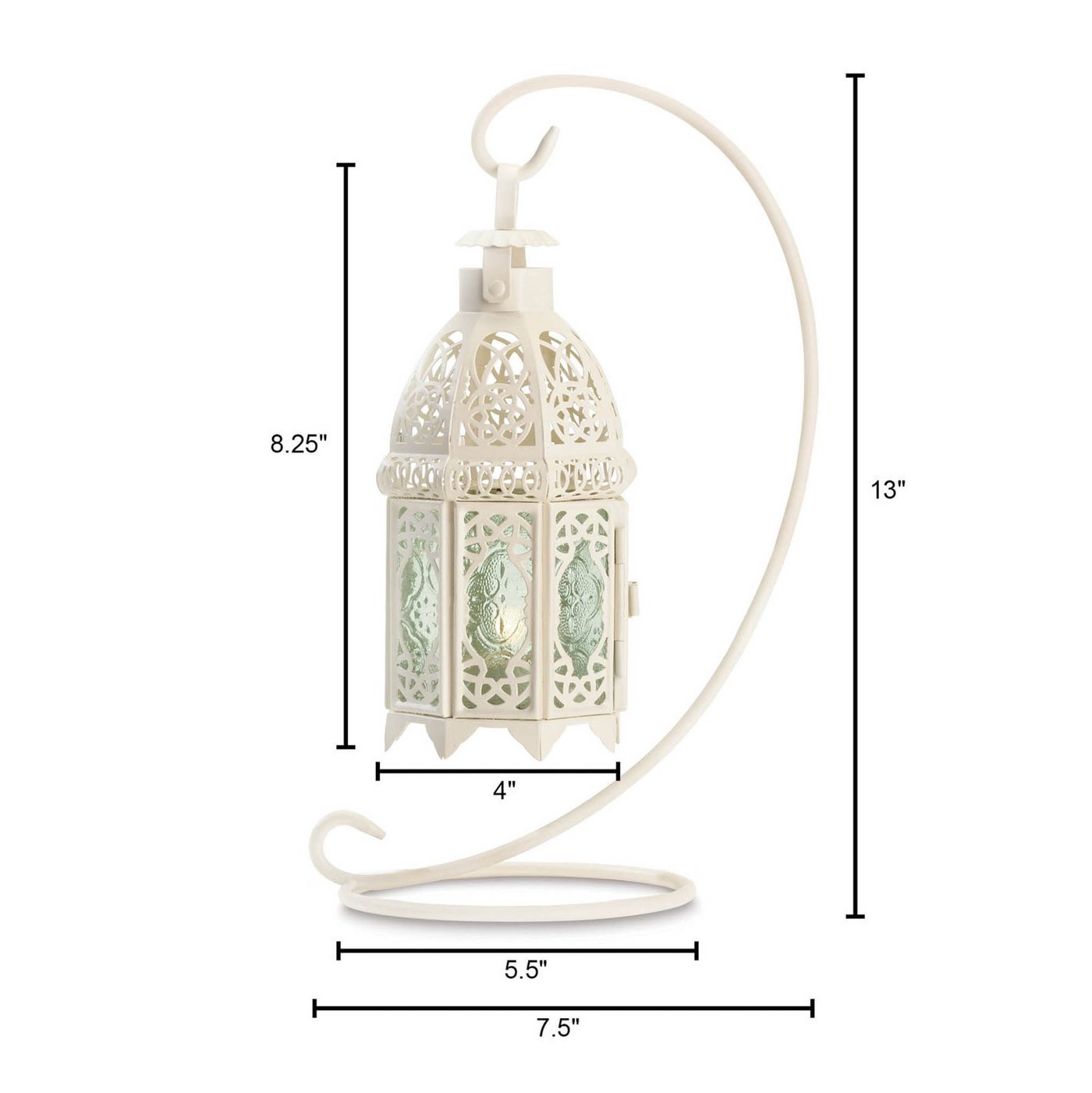 • The lantern weighs 1.2 lbs and measures 5 1/2" x 5 1/2" x 13" high.