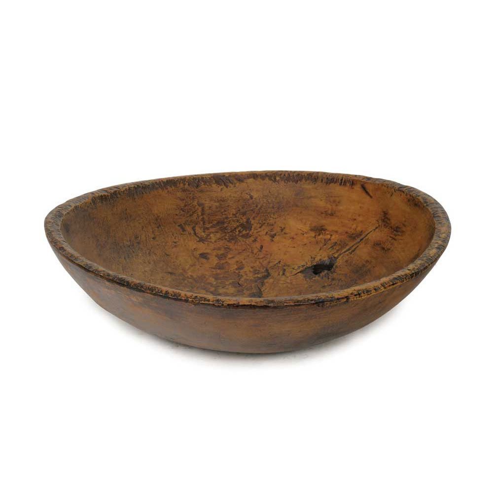 Features a knot that creates a hole in the interior of the bowl. Made of resin. Our Treen is for decorative use and is not recommended for use with unwrapped food.