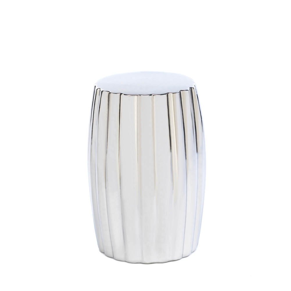• Add a hint of shine to your décor with this decorative silver stool. Made from durable ceramic material, this silver stool can be displayed on its own or used as a modern plant stand. The sleek silver finish and smooth surface will add a bold contemporary look to your living room, office or bedroom space. Maximum weight limit: 220 lbs.